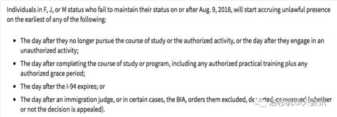 结束学业,或者授权访问活动后第二天,未有合法留美身份却仍然留在美国(非毕业典礼第二天,是指I-20、DS2019上项目完成日期的第二天)