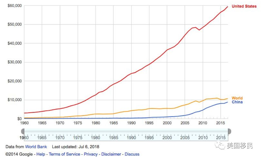 所以,如果单纯比较人均GDP,中国再过32年也追不上美国。宏观看来,谁穷谁富,有种悲伤的一目了然。