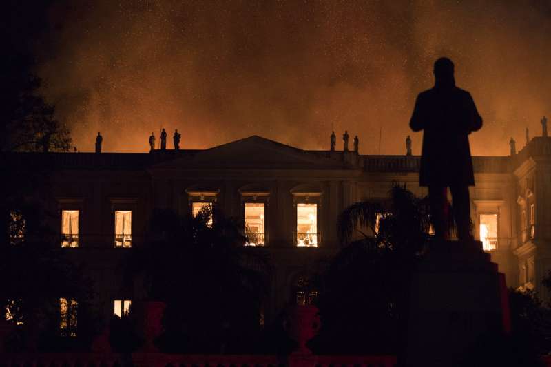 巴西國家博物館2日晚間驚傳火警,位於里約熱內盧的這座博物館是巴西歷史最悠久的研究機構,更是全拉丁美洲規模最大的自然史及人類學博物館,今年才剛慶祝建成200周年紀念,如今卻慘遭祝融肆虐。包括由王宮改建而成的美麗建築,還有恐龍化石、全巴西最古老的人類骨骸、古埃及和希臘羅馬時期文物等2000萬件館藏,全都深陷火海。巴西最大報《聖保羅頁報》稱,建築內部因為大火已開始崩塌,這些珍貴的文化資產恐付之一炬。