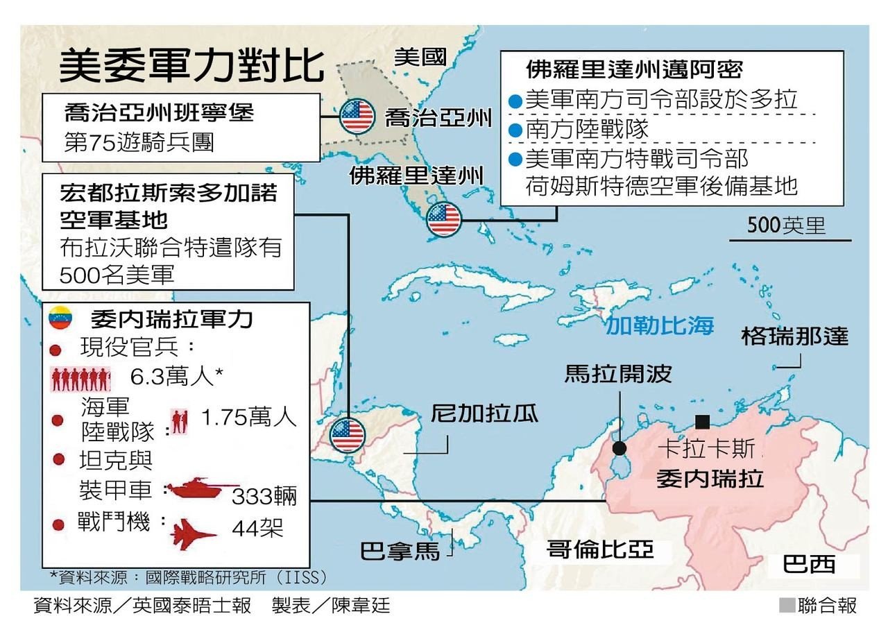 美國總統川普表明對委內瑞拉政局走向不排除任何選項,白宮國安顧問波頓廿八日更被媒體拍到手中筆記寫道「派五千兵力去哥倫比亞」,讓外界更相信美國有意出兵干預委國政局。英國泰晤士報卅日引述五角大廈前高層的話指出,若美國想動武推翻委國總統馬杜洛,至少需兩萬五千名美軍。