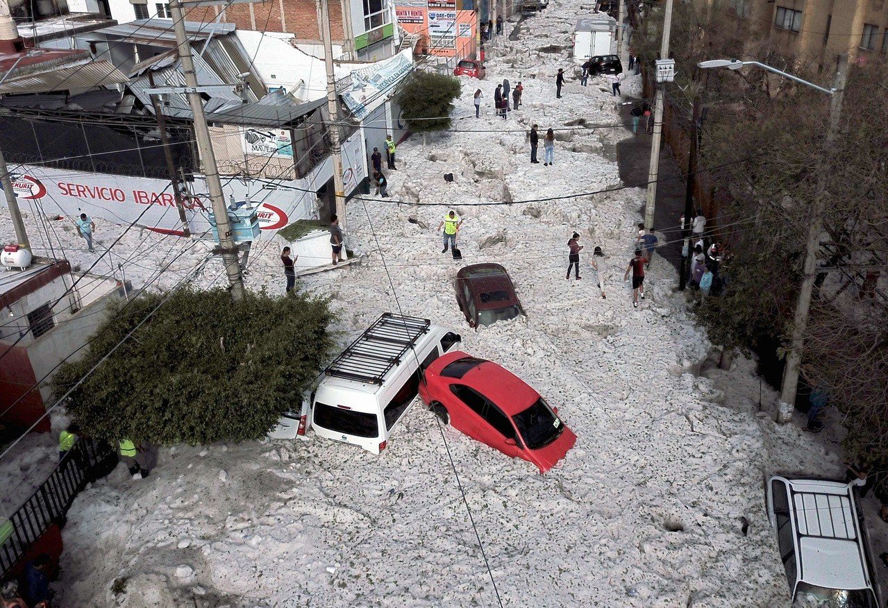 墨西哥第二大城、哈利斯科州首府瓜達拉哈拉(Guadalajara)6月30日晚間發生異常氣候,盛夏冰雹暴風雨突降,把整個城市埋在最高2公尺的冰雪堆中,城內6處郊區受災嚴重,反常的氣候嚇壞不少當地居民,放眼望去白皚皚一片,畫面格外驚人。