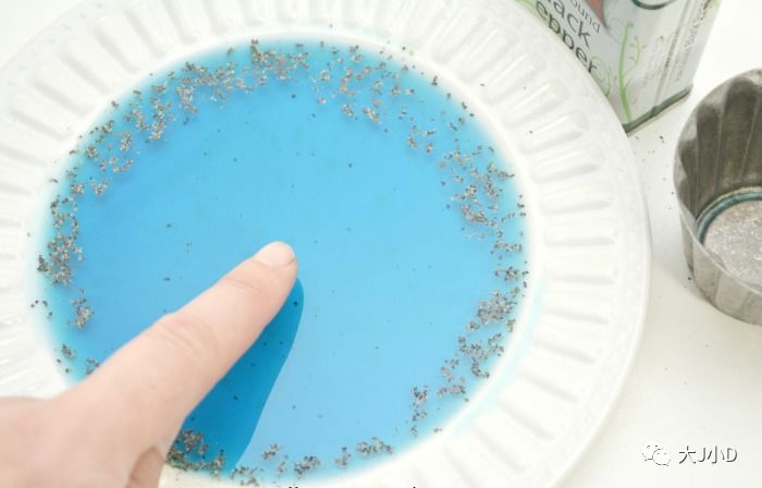 然后让孩子把一个手指放在水里,让孩子尝试去摆脱胡椒粉。