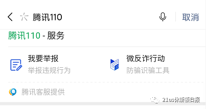 若有小伙伴不幸被黑心微商骗钱了,数额比较大的话建议直接报警。如果数额小,可以在微信里搜索“腾讯110”进行举报。