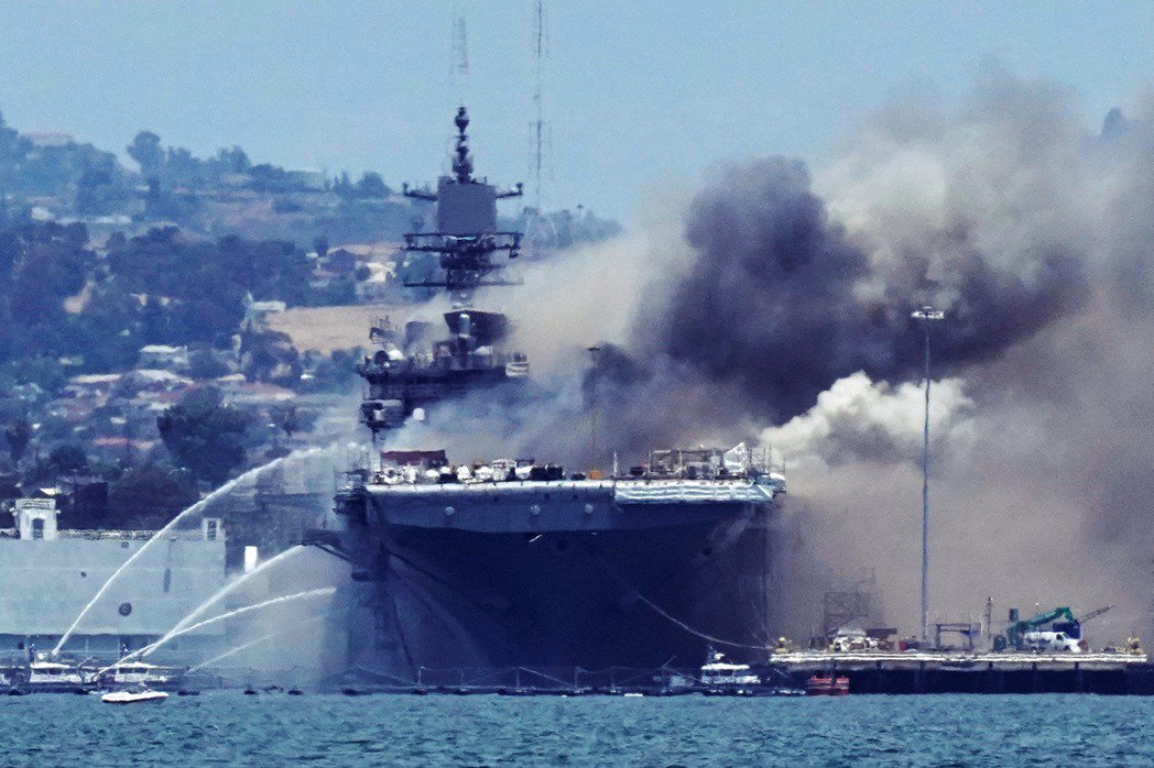 「好消息是無人罹難或失蹤...壞消息是軍方不確定戰艦的受損有多慘。」美國西岸的軍事重鎮——加州聖地牙哥軍港——12日發生重大軍艦火警。美國海軍的黃蜂級兩棲攻擊艦「好人理查號」(USS Bonhomme Richard LHD-6),周日上午突因不明原因傳出艦上爆炸,大火延燒超過10小時,並造成17名水兵、4名港區平民受傷。美國海軍表示,好人理查號目前正在母港進行定期維護作業,初判火警為「普通火災」,目前無關也沒有波及彈藥、燃油與機敏的軍用化學藥劑;但由於海上火警灌救不易,軍艦的悶燒與濃煙直到火起之後11小時都還沒撲滅,因此就算軍方對於「保住戰艦頗為樂觀」,但好人理查號的具體起火原因與受損規模,目前仍都無法確定。
