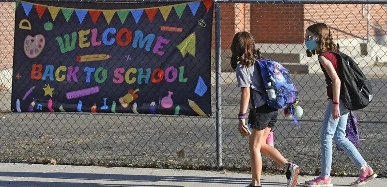 乔治亚州达拉斯小学的小学生本月3日戴着口罩上学。(美联社)