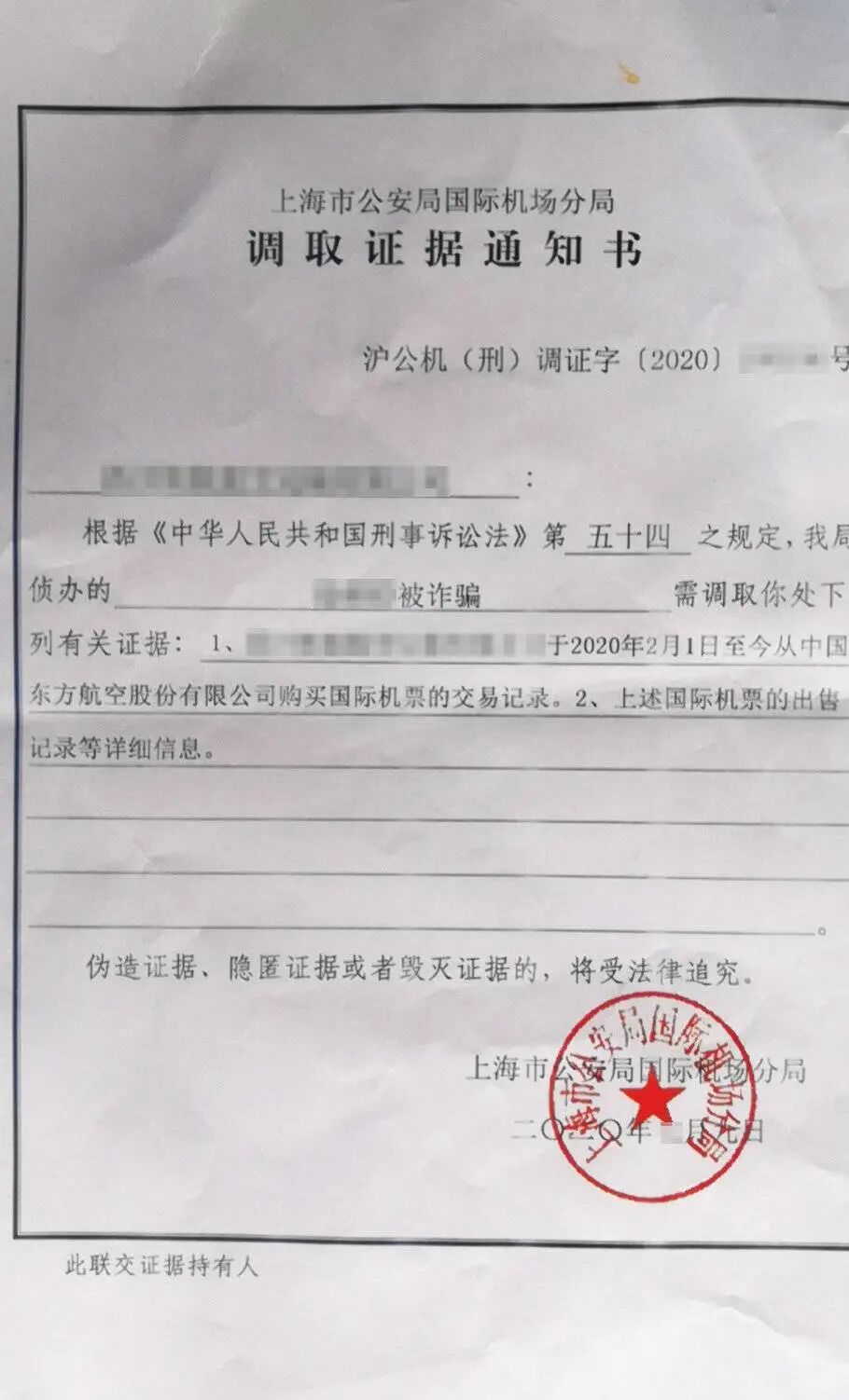 8月9日,宋刚收到上海市公安局国际机场分局调取证据通知书,得知内部有人员私自代理机票,最终以涉嫌职务侵占罪进行刑事拘留。目前,上海和北京公安成立了专案组,以诈骗形式立案调查,“有些旅客知道了去找代理人,代理人只好把钱退给他们。”