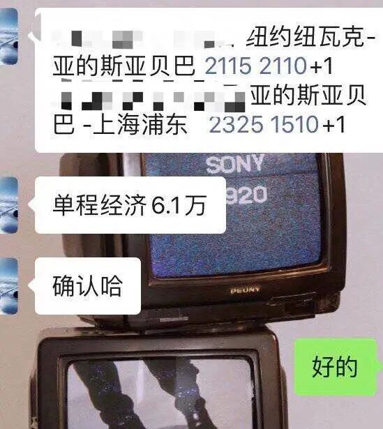 在纽约读研的程同学,微信联系到一位机票代理人,原价2万多的埃塞俄比亚航空的中转航班,最终以6.1万元的价格成交,回到了上海,“代理说没办法把价格放低,因为价格低了对方也不得给他位置。当时想的是,能成功回国就好了,哪儿想到其他那么多。”