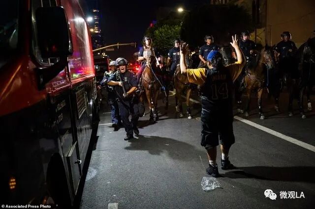 其中大多数人在LAPD进入战术戒备并宣布非法集会后,依旧不愿解散。