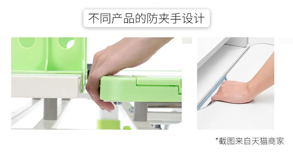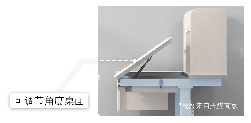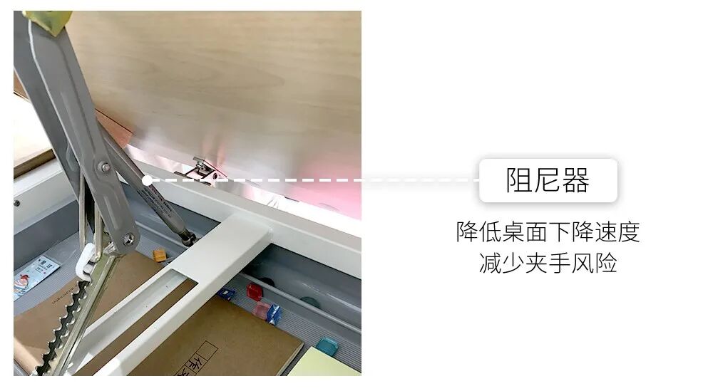 另外有的产品的桌面角度调节还会配有阻尼器,在桌面角度恢复时会缓慢下降,更好避免夹手的风险。