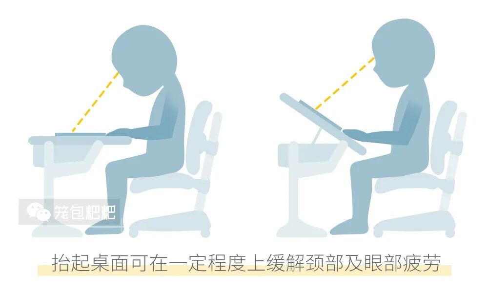 另外,有一定倾斜角度的桌面可以避免孩子低着头学习,帮助孩子缓解脖子和眼睛的疲劳。