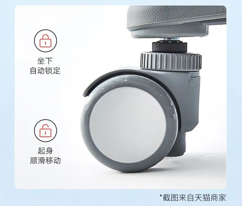 市面上学习椅的椅轮有可锁定和不可锁定的。具有锁定功能的椅轮可以避免孩子滑来滑去,而锁定的方式有重力轮和手动自由锁两种。