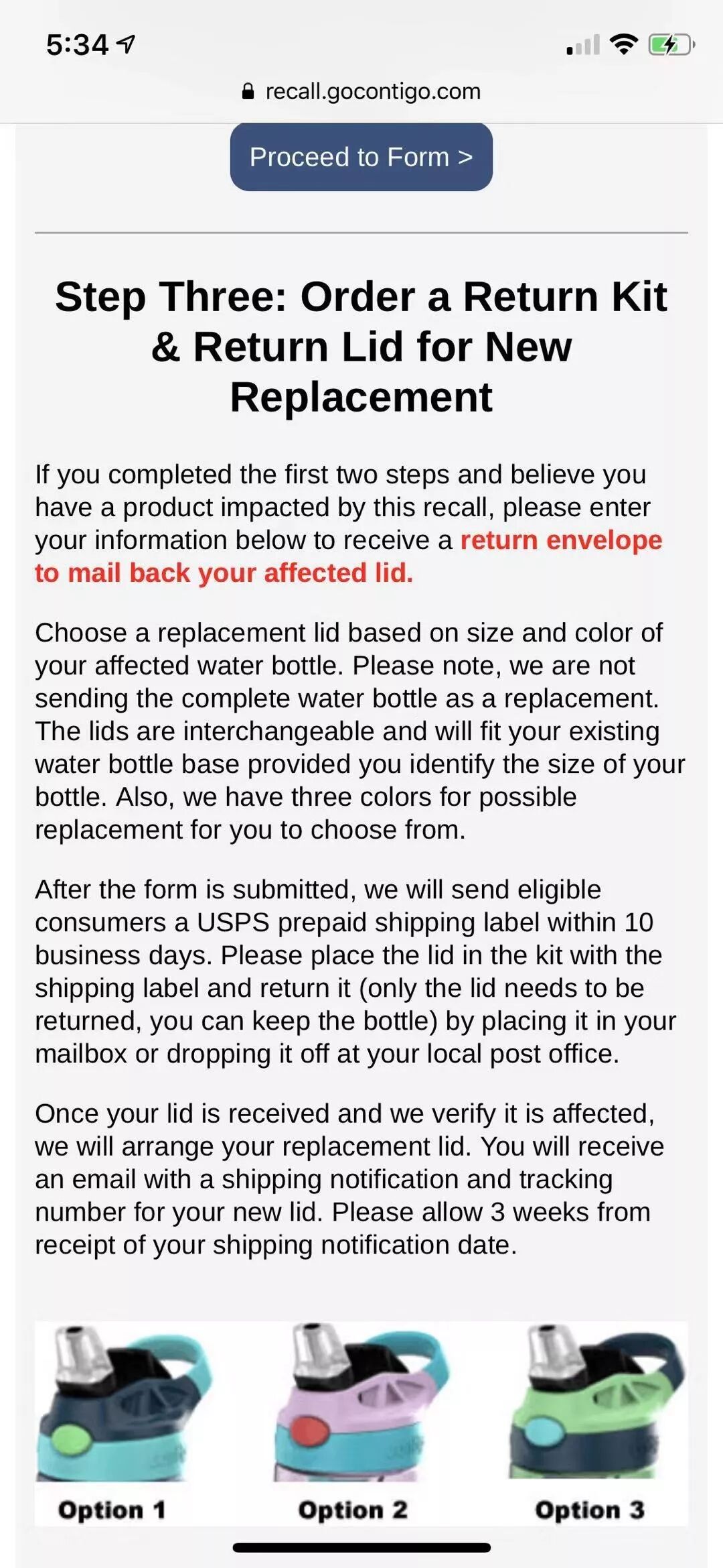 3. 一旦表格提交,Contigo将在10个工作日向符合条件的消费者,发送USPS预付运费标签。受到标签后把盖子寄回给公司,然后你就会在3星期内受到新的盖子。