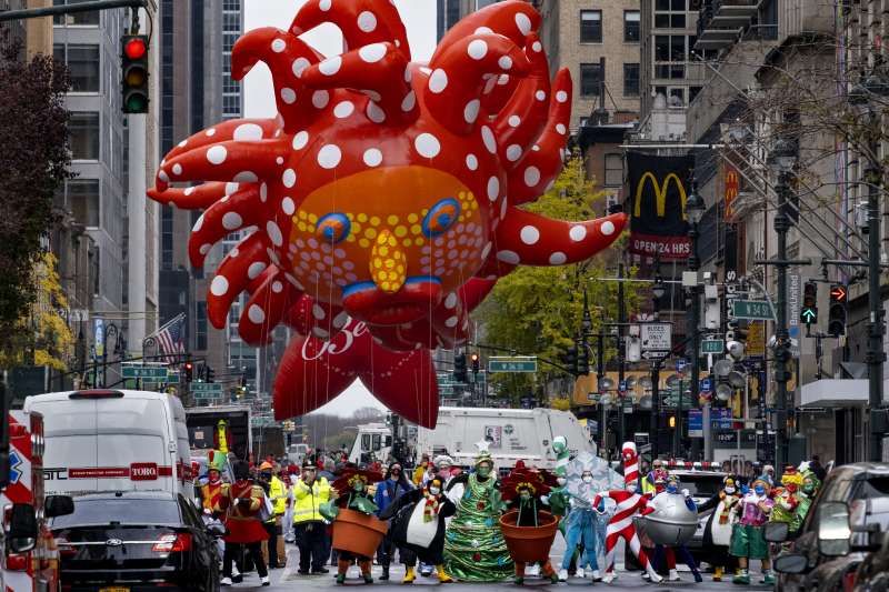 紐約梅西百貨感恩節遊行今天登場,大批民眾不畏低溫,夾道歡迎巨型氣球、花車與藝人演出,現場幾乎沒人戴口罩,曾重擊這座城市的COVID-19疫情彷彿成為過去式。