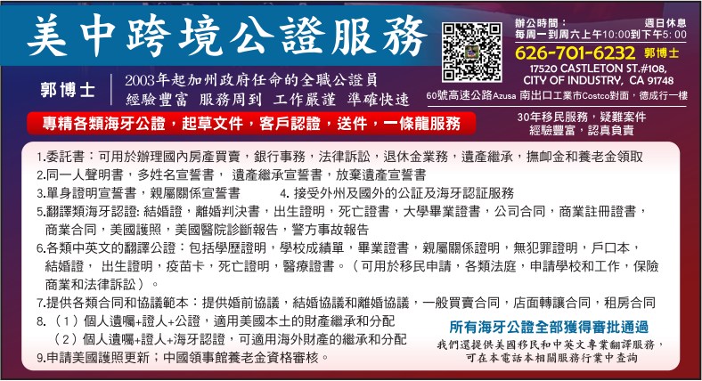 【移民】关于办理海牙公证服务的说明 | 美中跨境公證服務