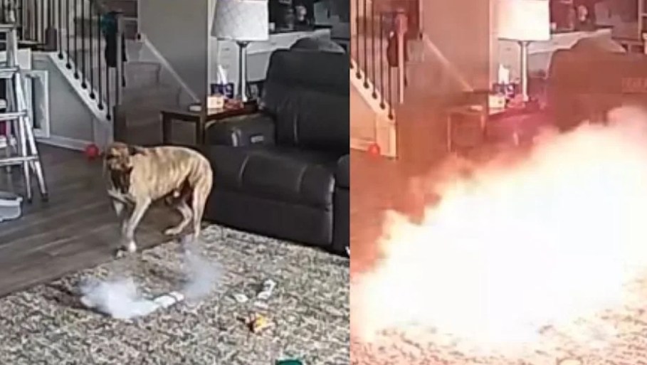 監視器畫面清楚記錄了事發經過:Colton在主人不在家時,開始啃咬一個裝有鋰電池的裝置。牠咬破電池後,地毯突然冒出煙來,接著冒出火光,最後甚至燒了起來。狗主人David Sasser表示,從影片中可以看到狗狗咬了一口後感到驚訝,接著似乎意識到自己闖禍了。