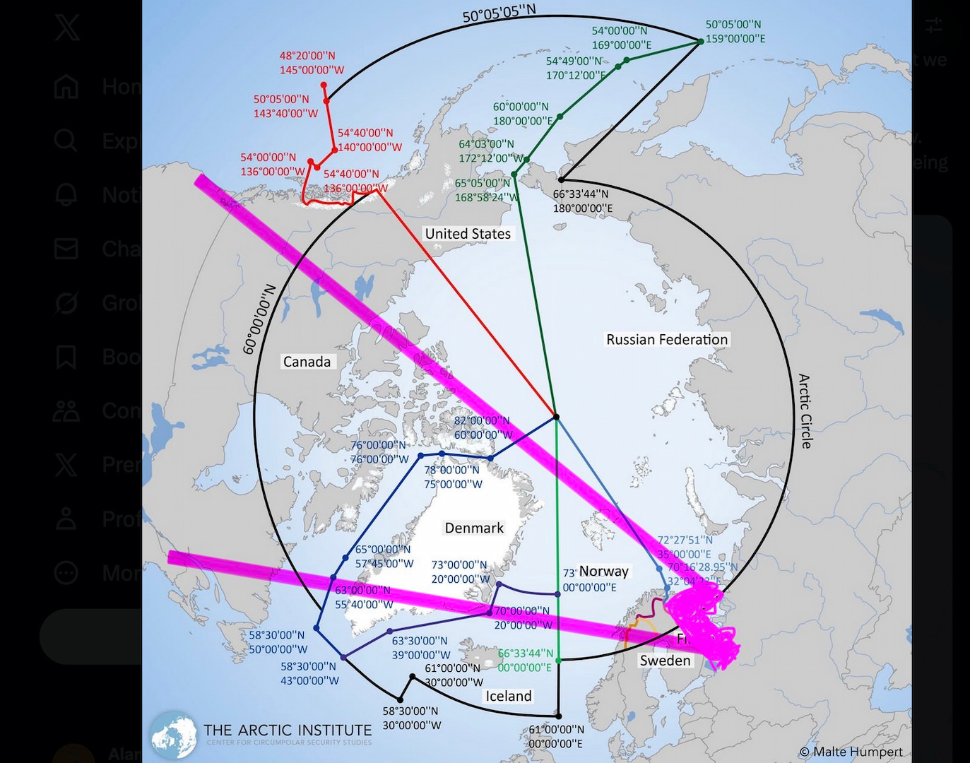 1) 飛彈防禦的最前線: 格陵蘭地理位置介於北美與歐洲之間,是美國監控洲際彈道飛彈(ICBM)的關鍵路徑,島上的圖勒空軍基地(Thule Air Base)多年來都是美軍飛彈預警系統的樞紐。