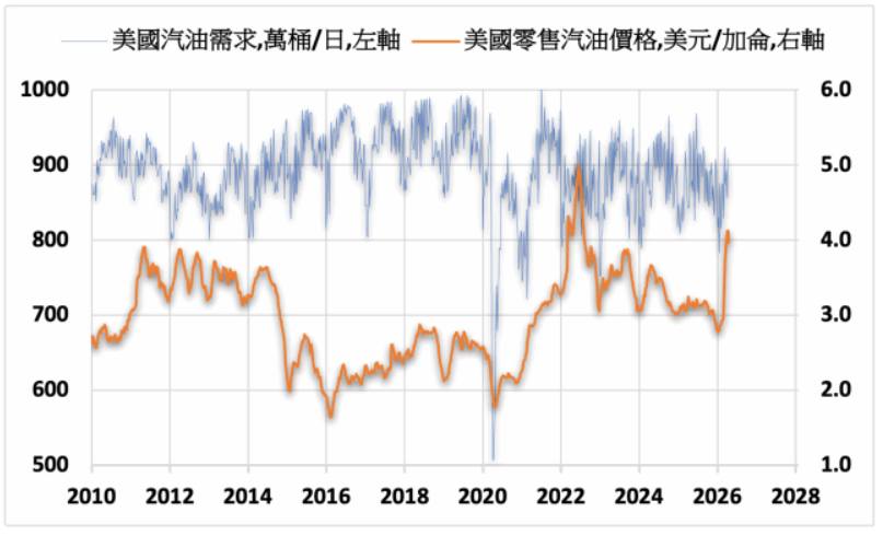 報告預測,美國零售汽油價格在2026年平均為每加侖3.70美元,2027年為每加侖3.46美元,均高於2025年的每加侖3.10美元。柴油價格今年平均為每加侖4.80美元,2027年為每加侖4.11美元,亦高於2025年的每加侖3.66美元。