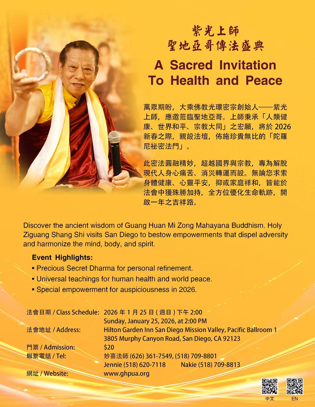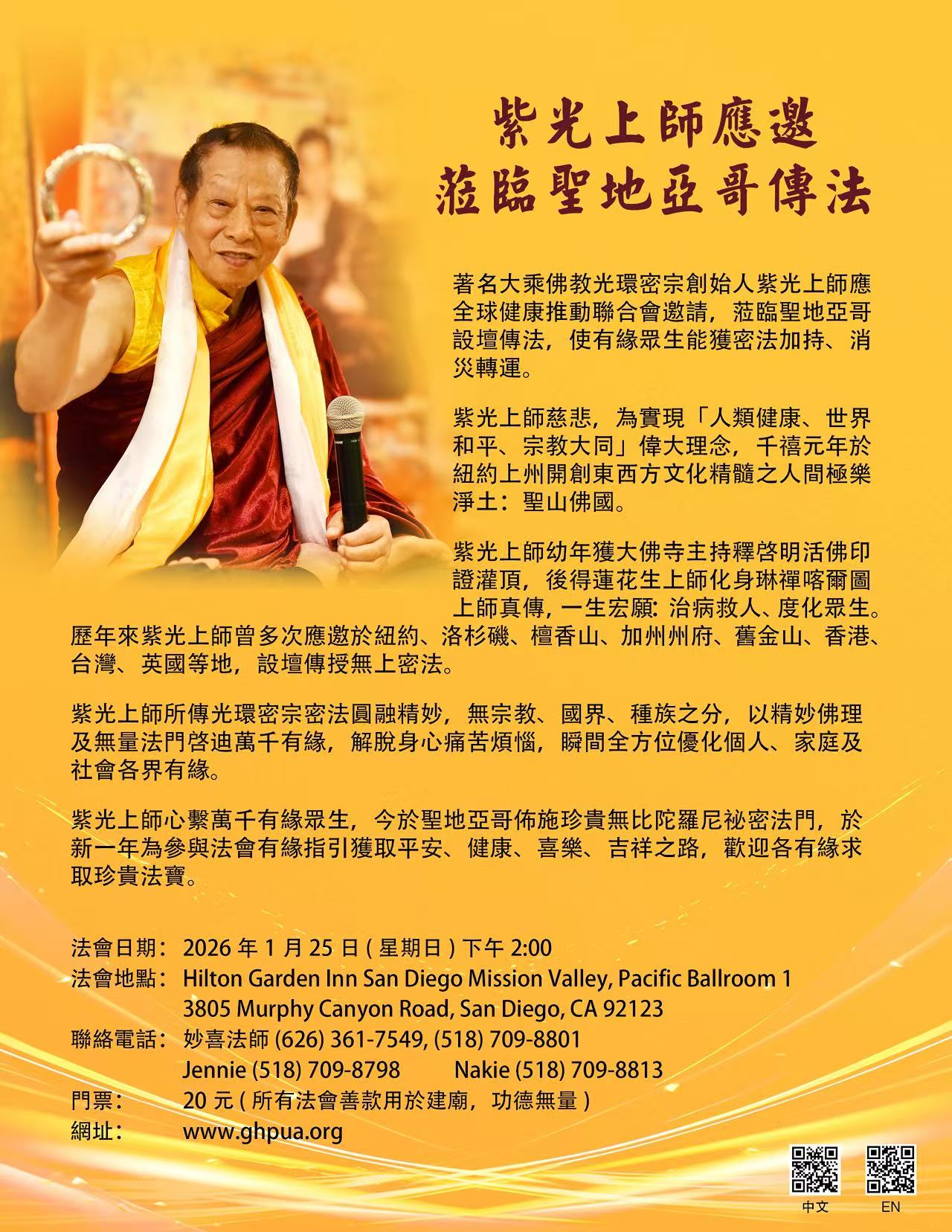 【信仰】紫光上師應邀 蒞臨聖地亞哥傳法