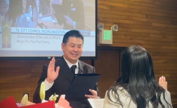 【亞凱迪亞訊】在昨晚 (3日) 舉行的亞凱迪亞市議會年度重組會議上,資深市議員鄭博仁(Paul Cheng)正式宣誓就任副市長一職,這是他第二次擔任亞凱迪亞市副市長一職。在就職發言中,特別強調了公共安全與城市財政健康的重要性,其長期致力於支持警消人員及退伍軍人的貢獻獲得廣泛認可。鄭博仁還闡述了他的服務理念,強調了善意與團結的重要性,並明確指出了城市賴以維系的四大基石。