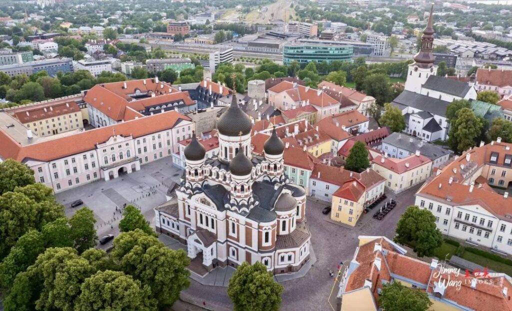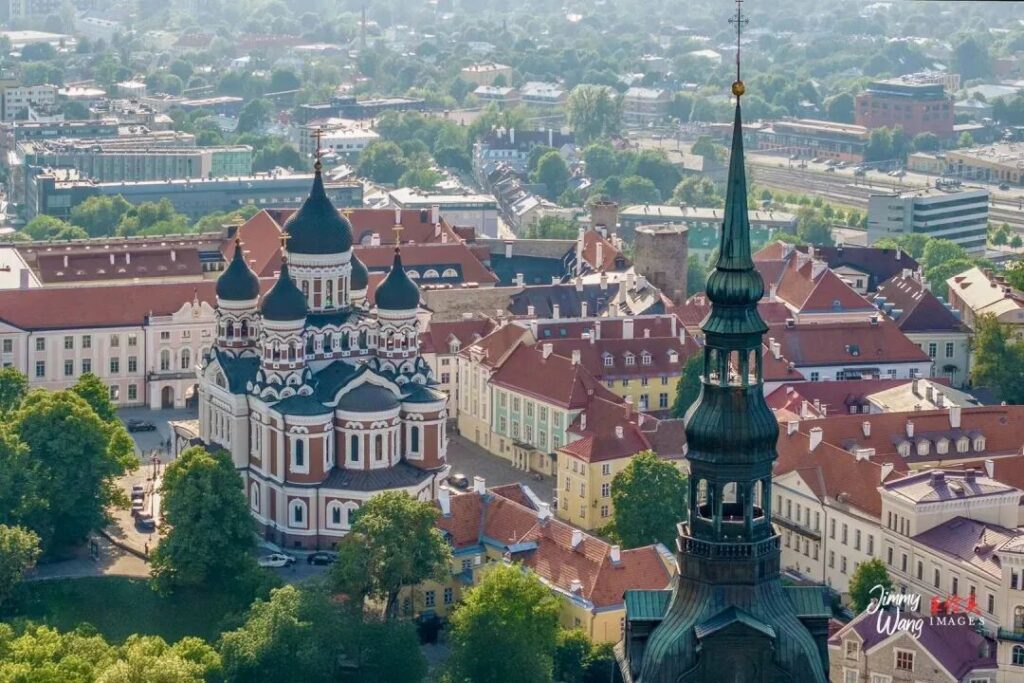 首都塔林(Tallinn)的老城是联合国教科文组织的世界文化遗产,我们高屋建瓴,直击目标,先用无人机空中俯瞰中世纪建筑群,尤其是名闻遐迩的亚历山大·涅夫斯基大教堂的洋葱顶。