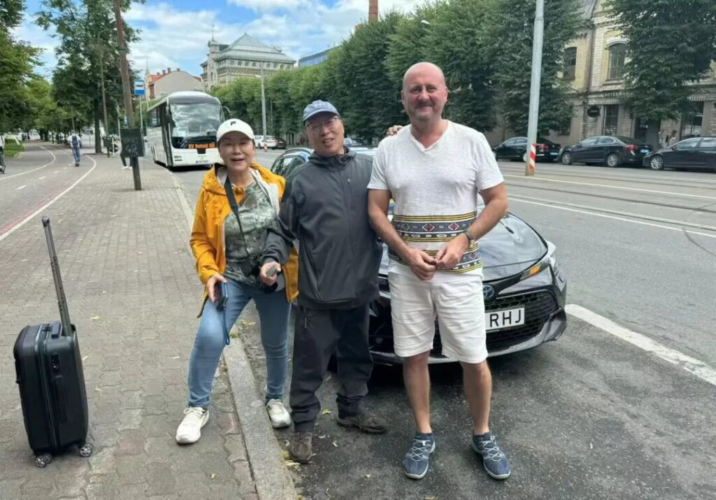 Joy Pan使用欧洲通用搭车APP“Bolt”,叫到一位司机,他刚从乌克兰来塔林一月有余,先前感觉情绪烦躁,翻译器俄语搞定,分别时送他美元小费,愉快合影;