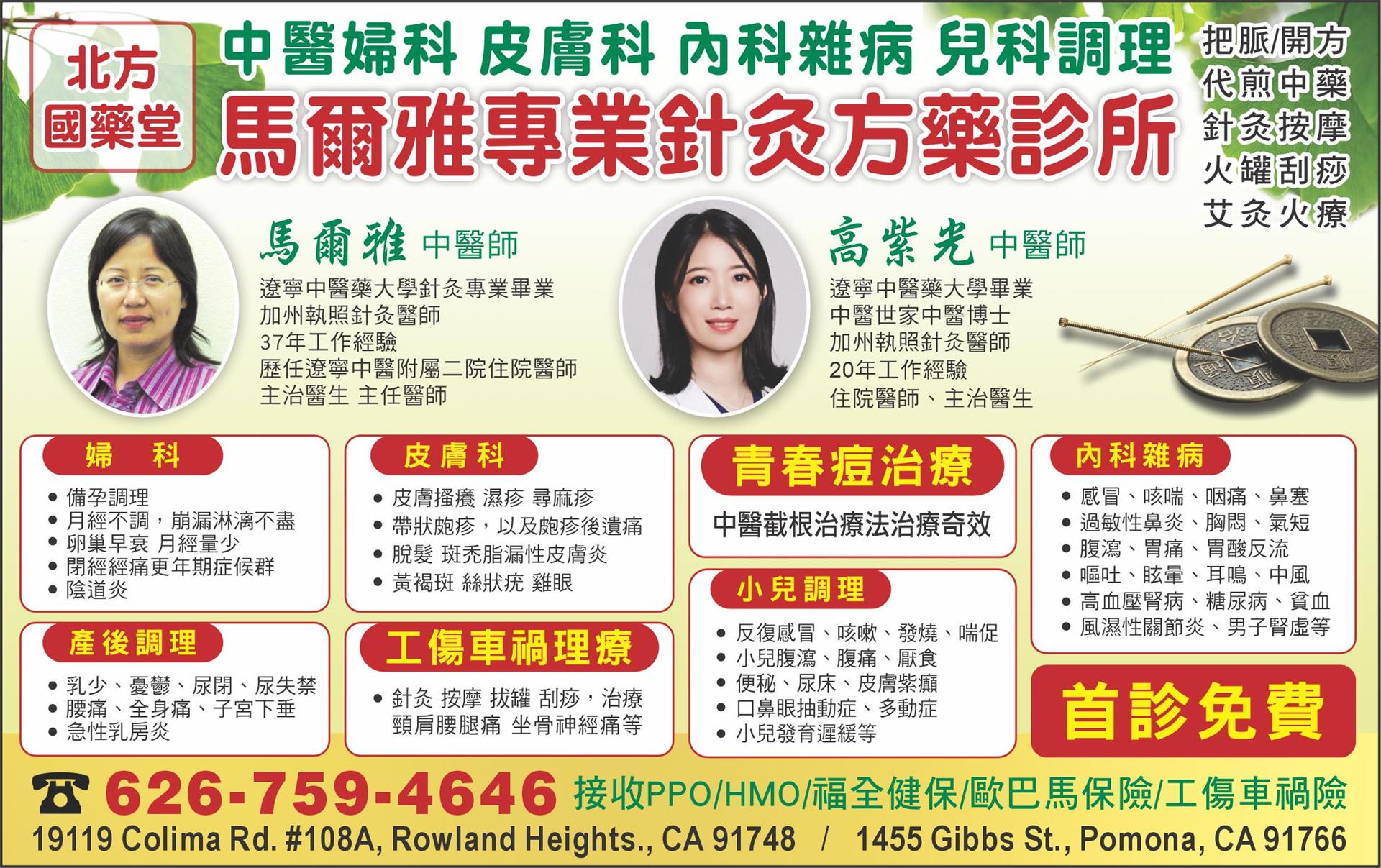 馬爾雅中醫師畢業於遼寧中醫藥大學針灸專業,為加州執照針灸醫師,擁有37年豐富臨床經驗。早年曾任遼寧中醫附屬二院住院醫師、主治醫生及主任醫師,累積深厚醫院臨床實務基礎,對婦科調理、內科雜病與體質改善有獨到見解。