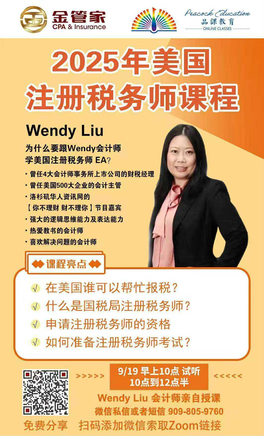 Wendy Liu會計師曾任於全美Fortune500大企業及全球知名四大會計師事務所,目前是洛杉磯華人資訊網洛城情報站二大節目嘉賓。