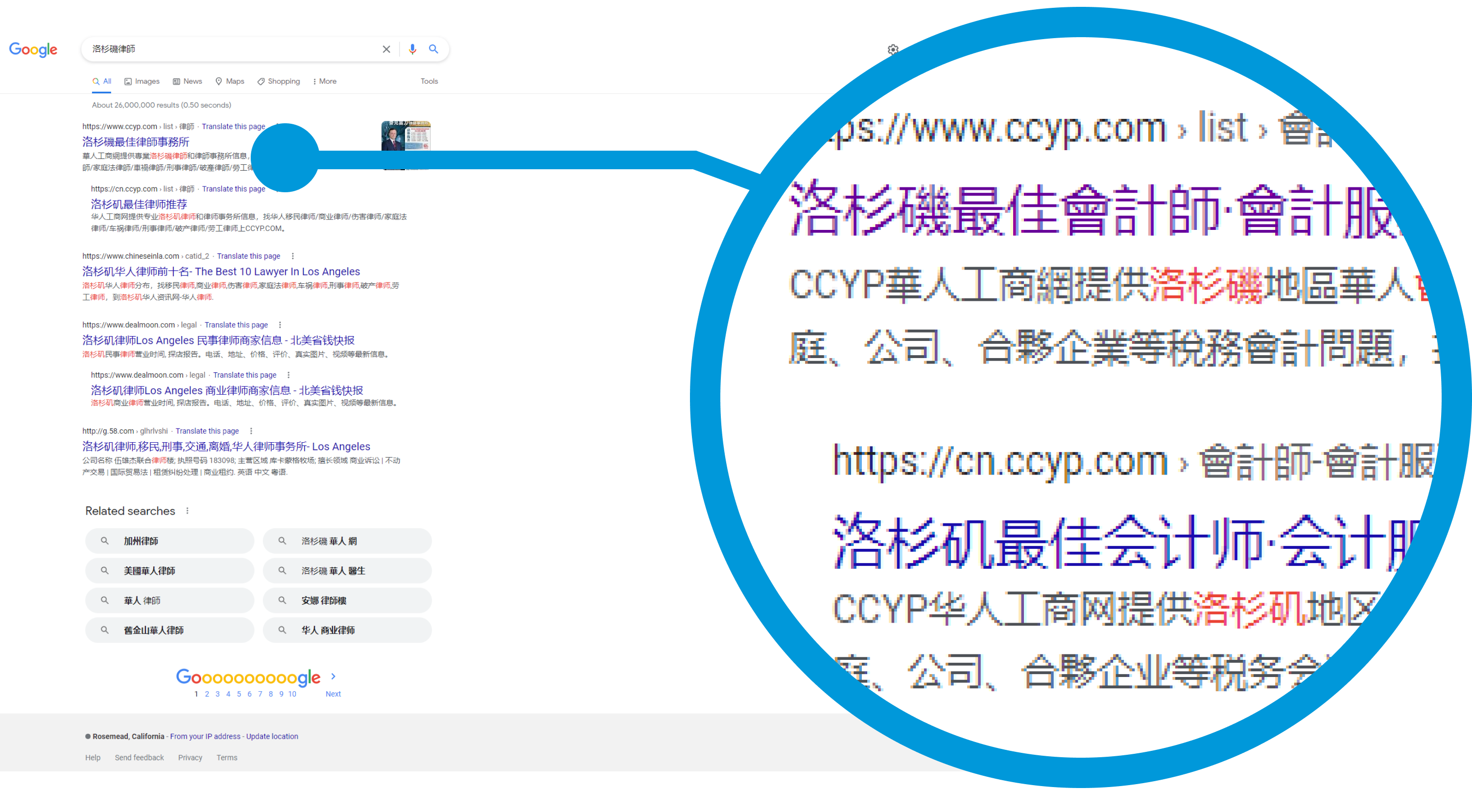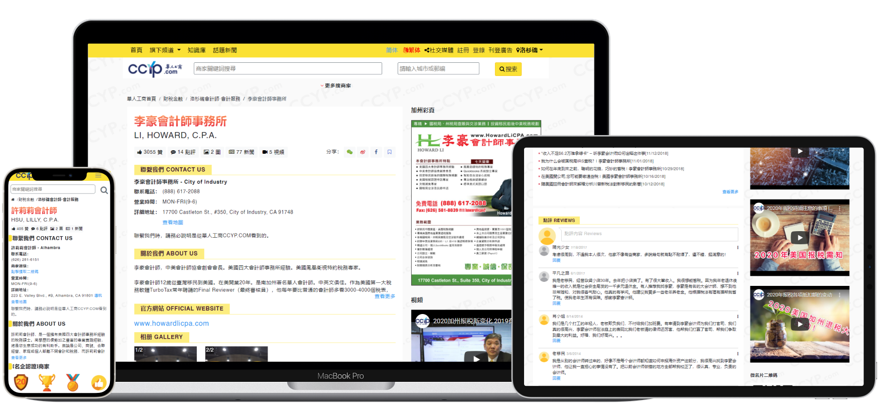 CCYP.COM是服務美國華人生活資訊的網站。我們為商家建立「商家页面」,讓您在網站搜尋与排名更精准。您可以在「商家页面」中發佈相片,视频,專業文章,展現客制化商家的專屬頁面,吸引更多客戶揀選您的商家作為生意上的首選。