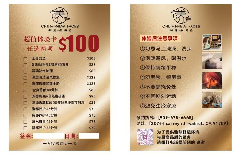 初覓/CHU MI - NEW FACES專精於美容‧美髮服務。初覓/CHU MI - NEW FACES的辦公地址在20744 Carrey Rd., Walnut, CA, 91789,公司電話是(909) 675-6668該商家的關鍵詞包含:養生館 消水腫 塑形 體寒 怕冷 美容 消除疲勞